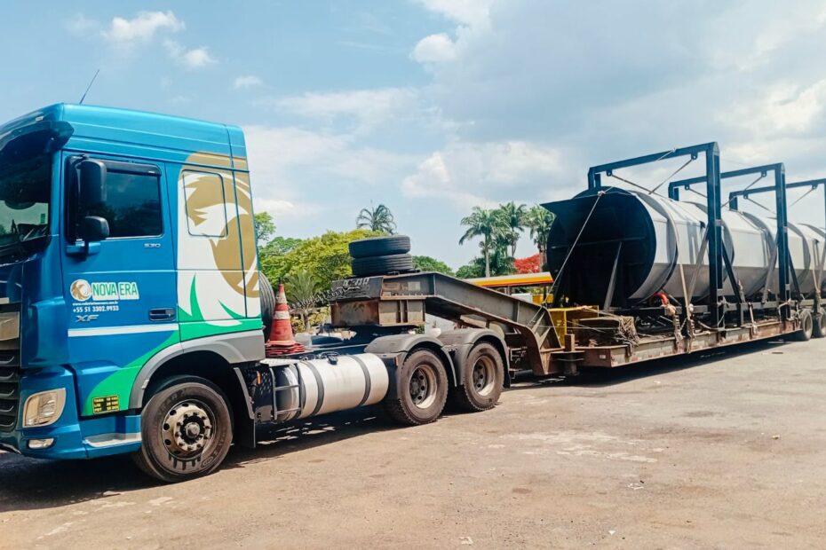 A Nova Era está à frente do transporte de uma grande estrutura que chamou a atenção dos motoristas e da mídia em todo o Brasil nas últimas semanas. Trata-se de uma gigantesca composteira cilíndrica de 16 metros de comprimento por 4,5 metros de largura, desenvolvida pela startup gaúcha Igapó, integrante da comunidade Tecnopuc.